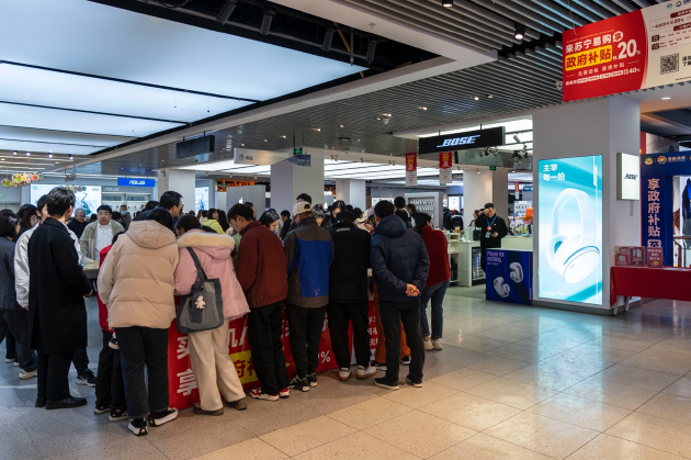 国补加握,春节市集火热握续,苏宁易购示意,世界门店不打烊,加力开展“新国补”,保供应、优体验,进社区、下村镇,福利欺压、职业持续。