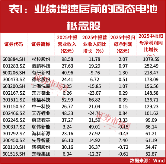 豪鹏科技、有研新材、德尔股份、上海洗霸、东方锆业、德福科技、中一科技、天都锂业8只固态电板成见股相通功绩翻倍增长(见表1)。